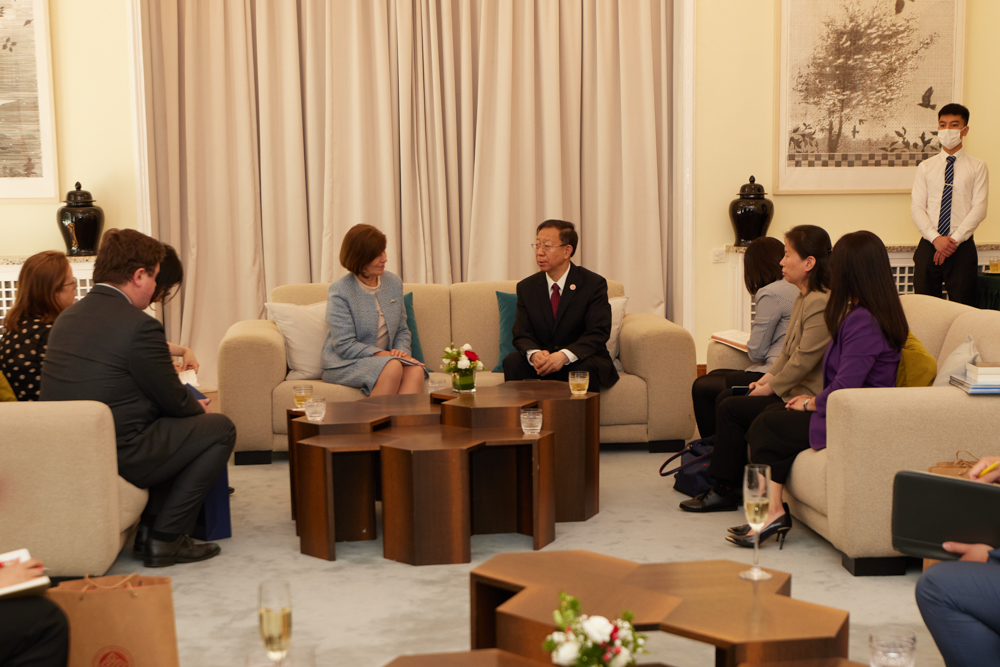 安黛文大使對(duì)孫寶國(guó)一行的到來(lái)表示歡迎,她介紹了中愛(ài)兩國(guó)在教育合作和人文交流的發(fā)展情況,并重點(diǎn)介紹了雙方共同設(shè)立和開(kāi)展的科研合作基金項(xiàng)目。安黛文大使充分肯定了我校與愛(ài)爾蘭高校合作以來(lái)所取得的成績(jī)。她表示,愛(ài)爾蘭駐華大使館將積極支持北京工商大學(xué)與愛(ài)爾蘭高校在優(yōu)勢(shì)學(xué)科和研究領(lǐng)域建立更加密切和深度的合作,并對(duì)雙方未來(lái)的合作充滿(mǎn)期待。