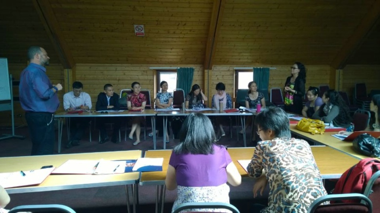 培訓(xùn)團(tuán)于7月20日順利抵達(dá)牛津,7月21日上午,牛津大學(xué)赫特福德學(xué)院介紹牛津大學(xué)的歷史文化背景、優(yōu)秀傳統(tǒng)、導(dǎo)師制等教學(xué)管理理念,并且采用啟發(fā)、提問(wèn)、討論等教學(xué)方法,與培訓(xùn)團(tuán)教師就英語(yǔ)教學(xué)理念和技巧進(jìn)行了生動(dòng)深刻的互動(dòng)探討。下午,牛津大學(xué)赫特福德學(xué)院國(guó)際培訓(xùn)項(xiàng)目主管凱羅琳·萊絲(Caroline Rice)及教學(xué)與語(yǔ)言項(xiàng)目總監(jiān)安德魯·海明威(Andrew Hemingway)與培訓(xùn)團(tuán)團(tuán)長(zhǎng)劉紅艷、副團(tuán)長(zhǎng)苗天順及團(tuán)員就培訓(xùn)工作安排和合作交流進(jìn)行交流和探討。